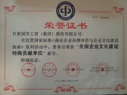 2012年度“全國企業(yè)文化建設(shè)特殊貢獻(xiàn)單位”榮譽(yù)證書