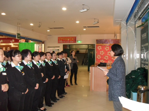集團(tuán)培訓(xùn)經(jīng)理孫曉輝女士介紹本次國芳集團(tuán)零售板塊蘭州地區(qū)收銀員職業(yè)技能評定工作進(jìn)程安排
