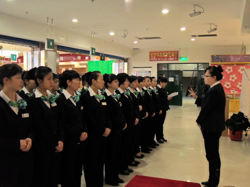 2013年4月9日是一個普通的工作日,但卻是國芳集團(tuán)收銀部崗位技能管理水平提升和發(fā)展歷程上非常重要的一天,因?yàn)榻裉靽技瘓F(tuán)零售板塊蘭州地區(qū)收銀員職業(yè)技能評定工作正式拉開帷幕。早上8點(diǎn)整,在蘭州國芳綜超廣場店正式召開了本次活動的動員會,動員會由收銀部經(jīng)理韓曉麗女士主持,蒞臨現(xiàn)場的公司領(lǐng)導(dǎo)有集團(tuán)總裁助理、財(cái)務(wù)總監(jiān)余麗華女士,集團(tuán)總裁助理、人力資源總監(jiān)孟麗女士,集團(tuán)培訓(xùn)經(jīng)理、蘭州百貨人力資源經(jīng)理孫曉輝女士,綜超人力資源經(jīng)理馬琳先生。